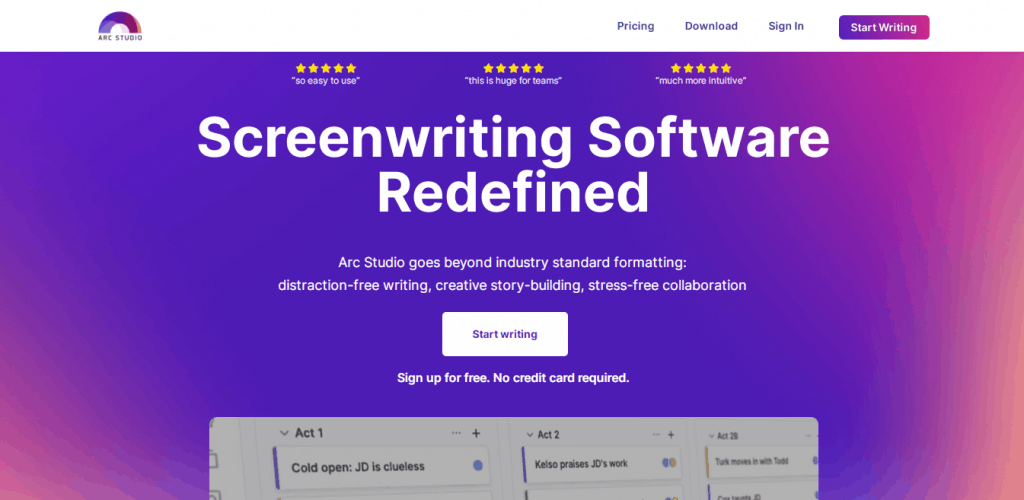 Arc Studio Pro was not developed around the idea of being the best, but being a very workable entity to anybody in the industry. Key features will work just as you expect them to, without going overboard and causing team confusion. The script writing software is free for a limited time, where it will eventually ask for an affordable subscription fee.