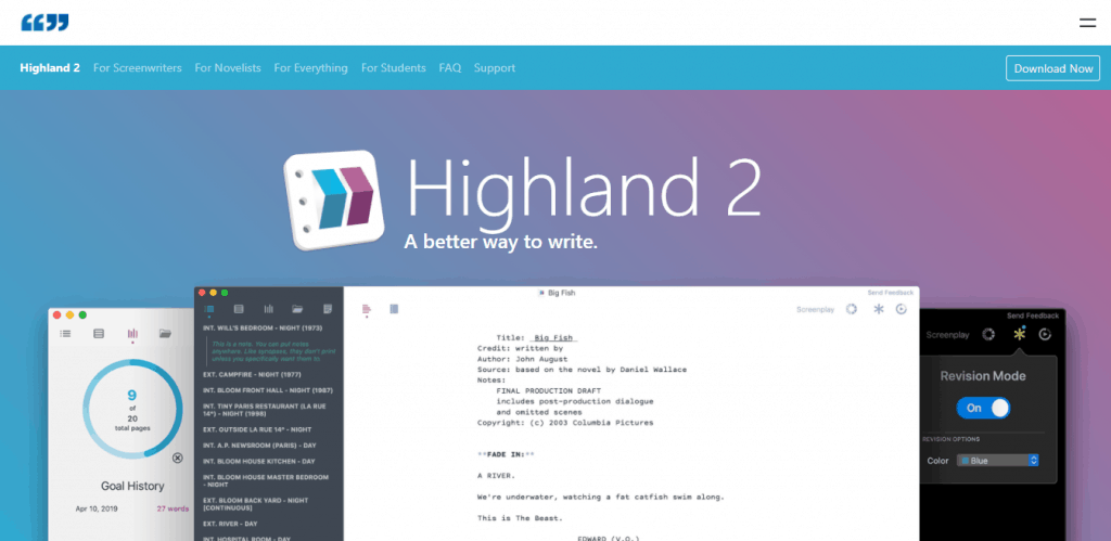 Highland takes the core premise of looking beautiful around its development. It’s safe to say it’s accomplished that – with one of the most gorgeous interfaces and flowing functionality out of any screenwriting software. It’s also welcoming to bloggers and journalists with easy incorporation of images – not only screenwriters.