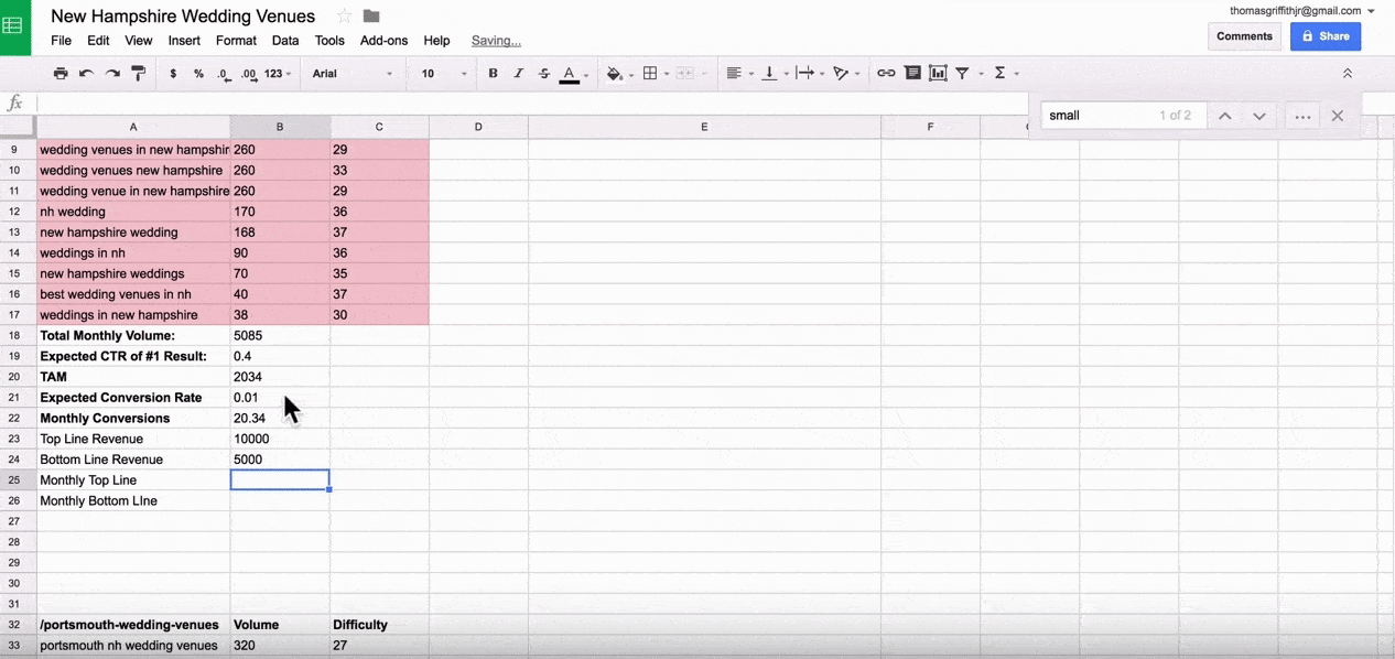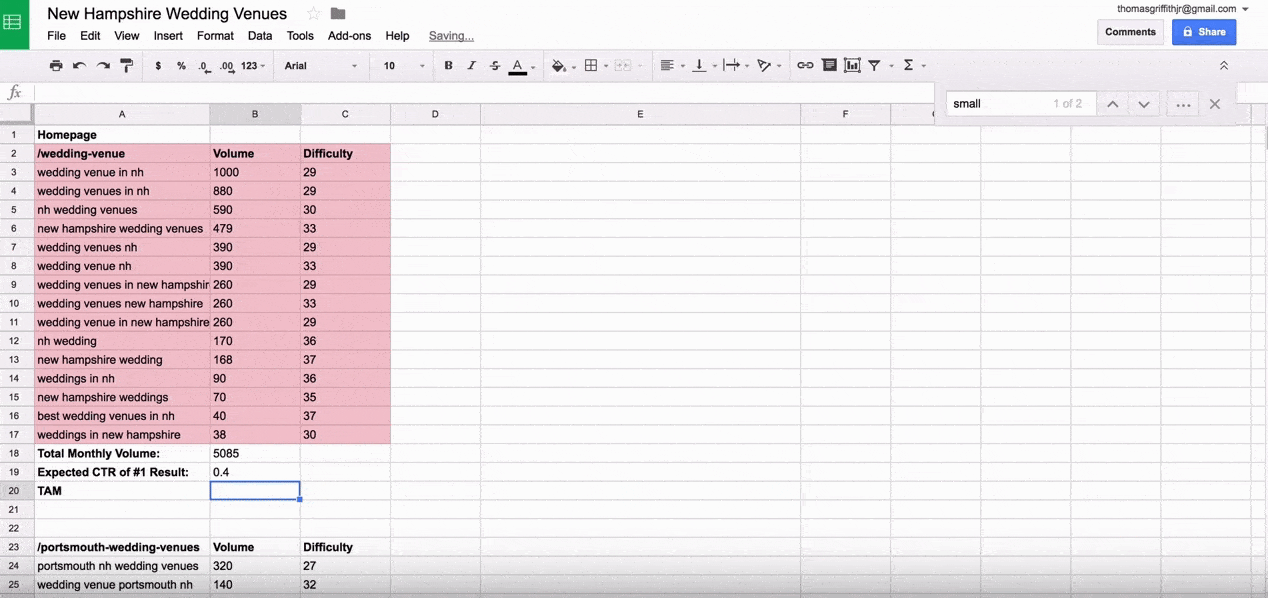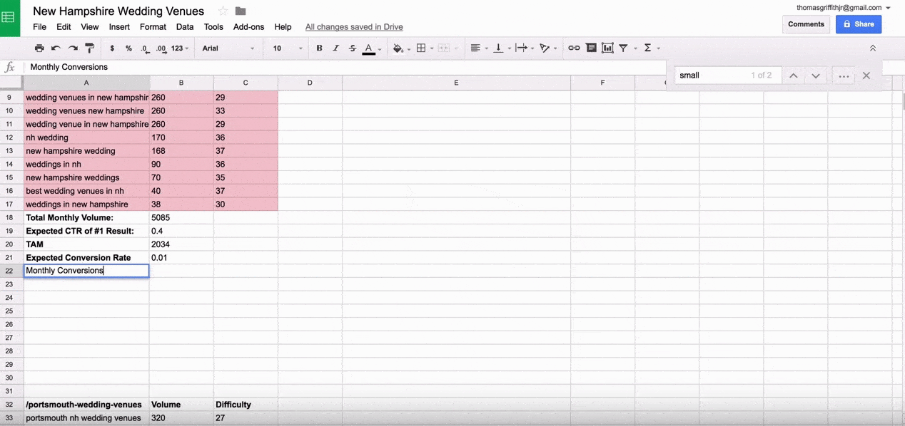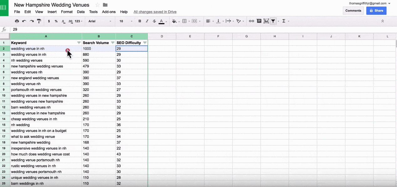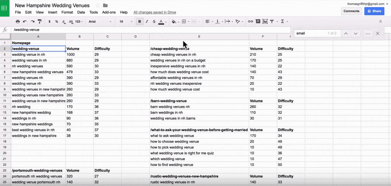 We used an example earlier about having a wedding venue in New Hampshire that you’d like to get found. We’ll continue to use that concept to explain the process of running in-depth keyword research.