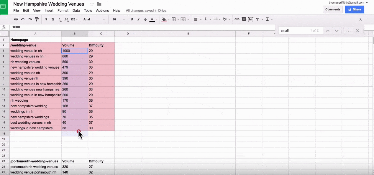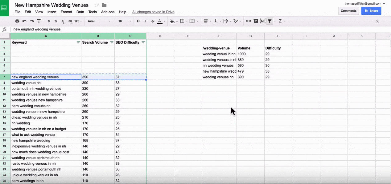 - Another group would be a broader search term such as ‘wedding venues New England.’ The keywords would be bunched by search intent of finding a venue is not just New Hampshire. It is the region as a whole.