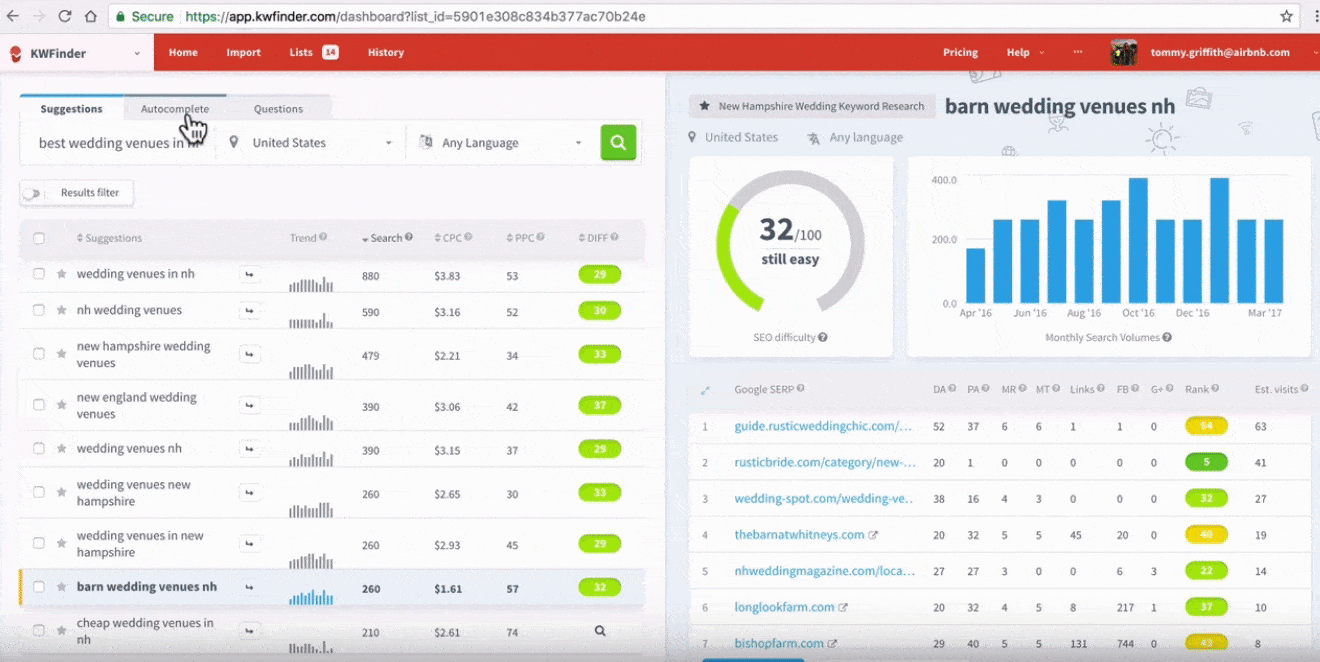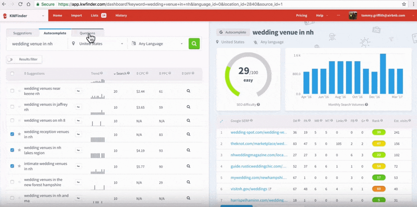 KWFinder helps make the keyword research process straightforward. But it is a very long process if you want a competitive advantage.