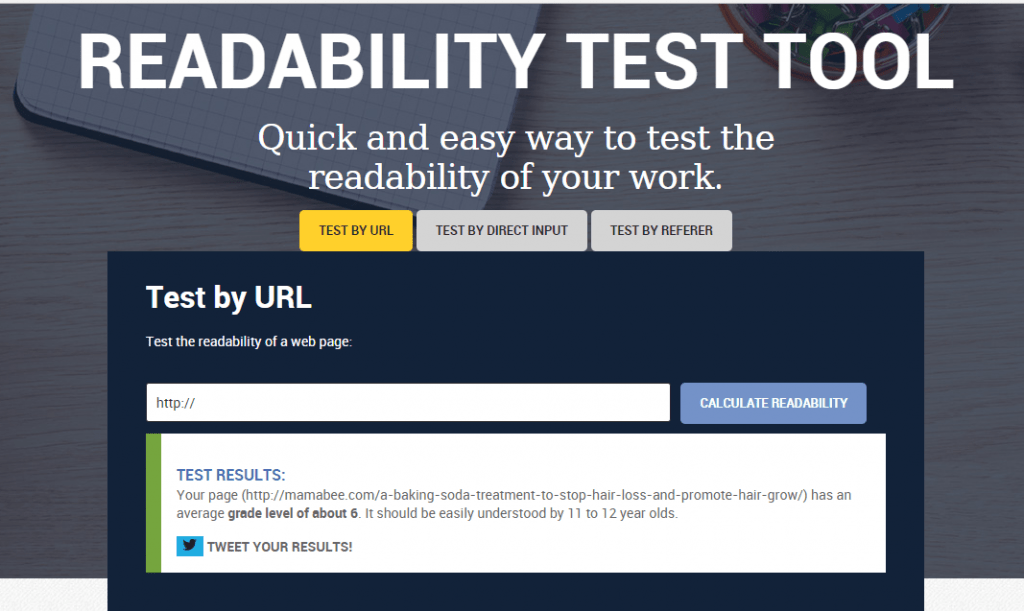 - The Readability Test Tool is a great way to check an article’s readability score. Try pasting the article URLs into the platform to check its readability. See the example below.