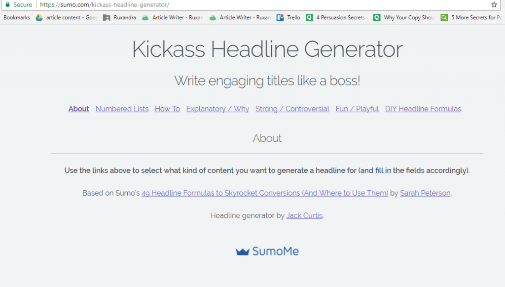 - The Sumo Headline Generator Tool can be your friend in developing some fantastic headlines. We can show an example by using the ‘how to’ type.